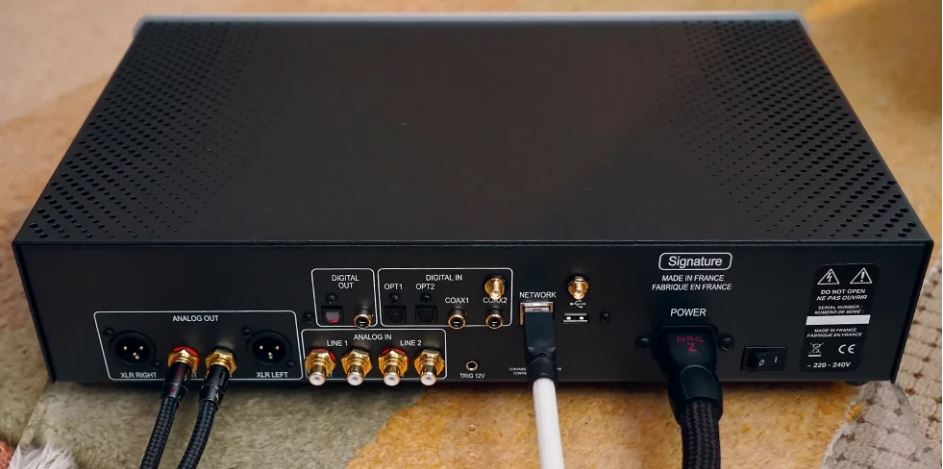 L’étage de sortie discret de classe A est si puissant qu’il peut fournir une puissance suffisante à n’importe quel amplificateur de puissance ou enceinte active. C’est également l’un des rares constructeurs à avoir développé une application de pilotage propriétaire. Ce sont des efforts louables qu’il convient de mentionner à juste titre. La manipulation peut donc être effectuée en façade, grâce aux commandes de base, ou via la télécommande très complète fournie d’origine.