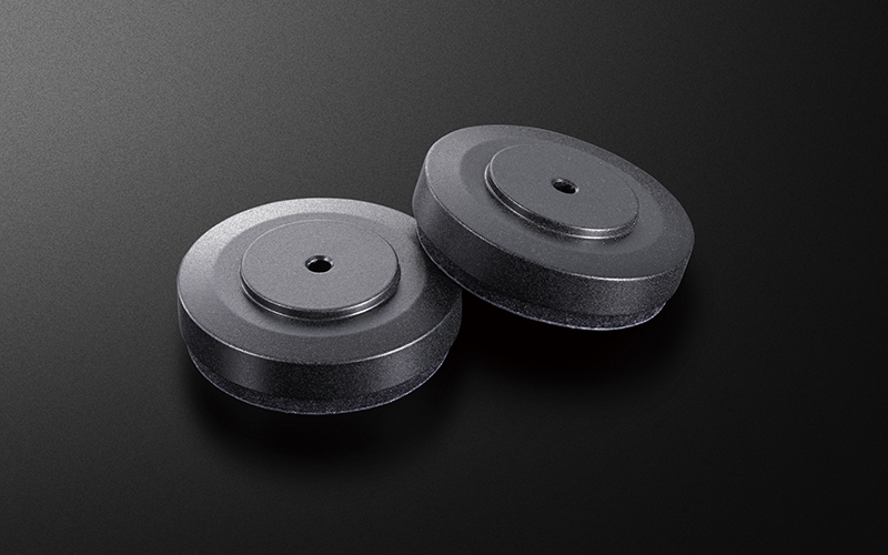 Le châssis fin s’accorde parfaitement avec notre lecteur réseau NT-07. Son châssis inférieur, extrêmement épais, est composé de deux plaques d’acier (2 mm + 1,6 mm), ce qui lui confère une grande rigidité et un centre de gravité bas. Les pieds isolateurs en fonte, à densité variable, isolent les composants électroniques et préservent la transmission du signal musical des vibrations indésirables.