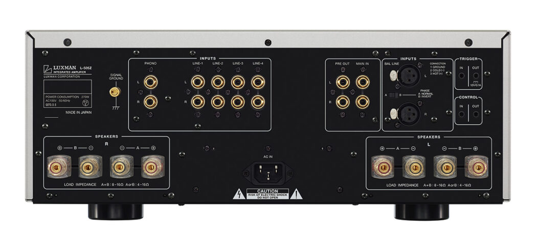 L’alimentation est le cœur même d’un amplificateur et doit fournir un courant instantané et des tensions de sortie stables. Le L-505Z est équipé du transformateur d’alimentation EI de 540 VA, haute capacité et d’une grande stabilité, conçu par LUXMAN, associé à quatre condensateurs de filtrage de 10 000 µF fabriqués sur mesure. Cette combinaison fournit l’énergie instantanée nécessaire pour reproduire fidèlement les dynamiques musicales les plus extrêmes comme les plus subtiles et maintenir une tension d’alimentation stable quelles que soient les variations de charge.